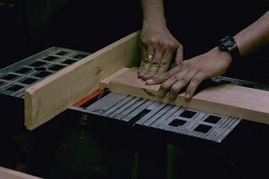 Here I am milling one of the sections of the Table top. The tongue that I'm making fits into the "bread board" edge that eliminated the visability of end grains. |