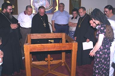 This is a preliminary design of the Altar table based on discussions from the few sources we had. The leg design changed as well as the design of the cross members. The photographs illustrate the differences. |